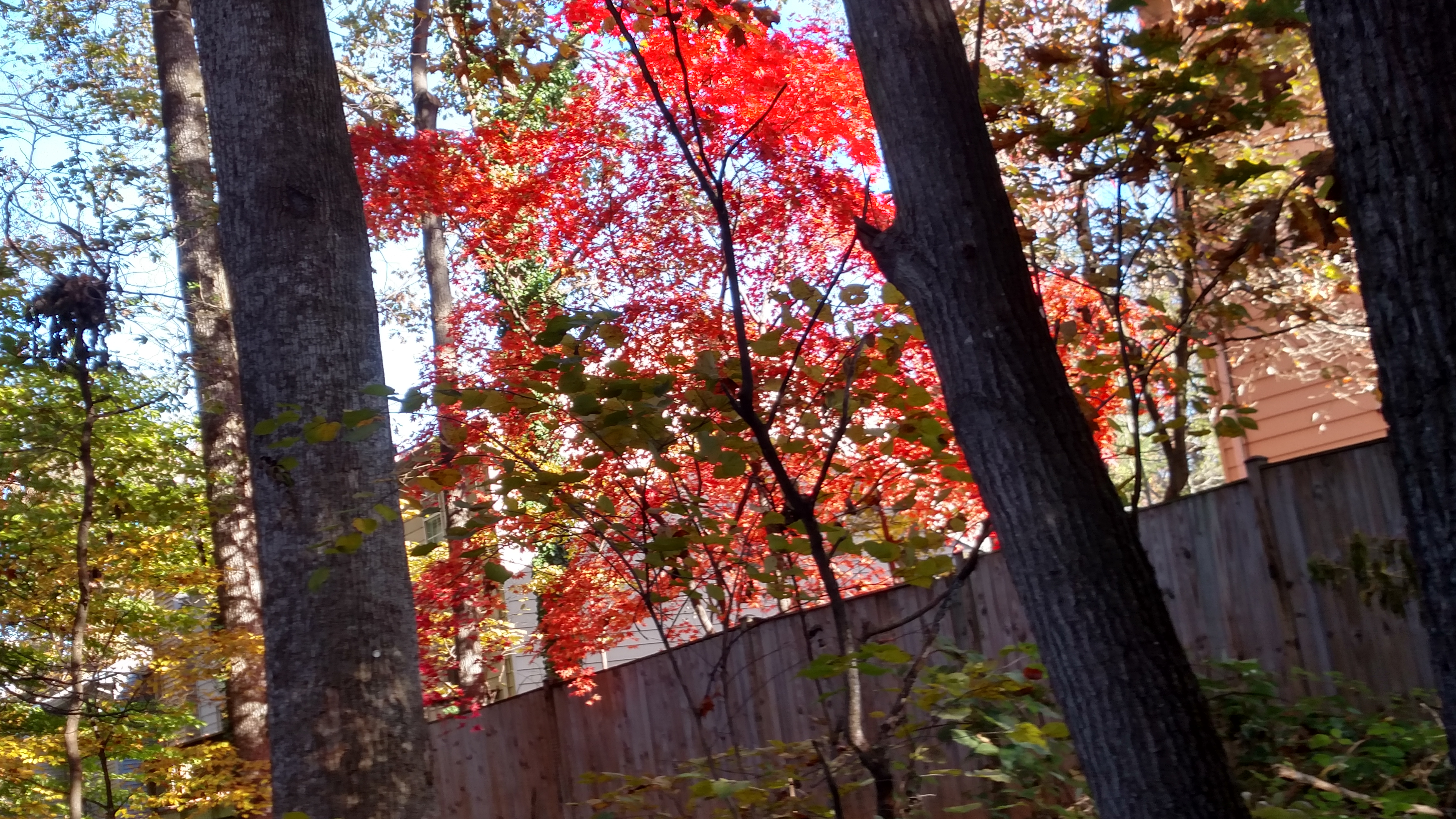 I love walking around the neighborhood, taking pictures of nature or pumpkins these afternoons, feeling the nice warm air flow around us, pausing to comment to the neighbors outside their houses doing yard work.
